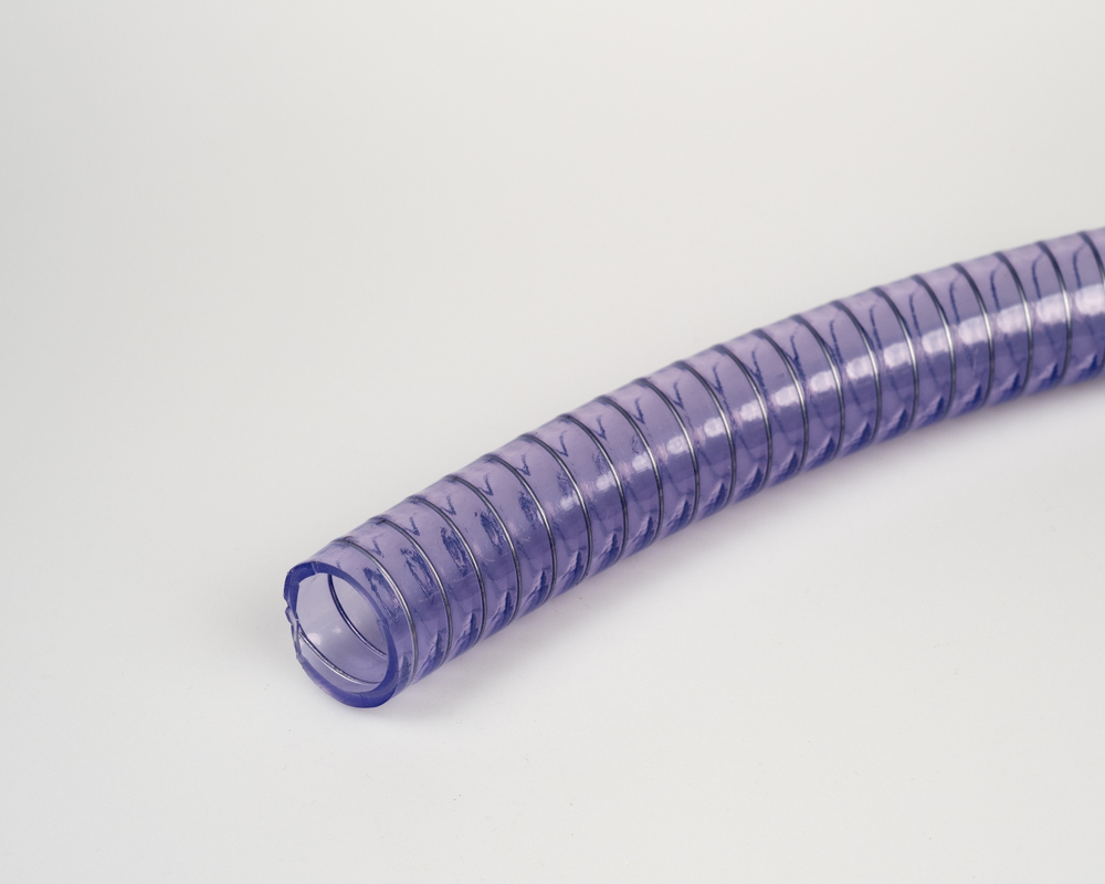 High-quality food-grade suction hose, made from food-grade PVC with reinforced steel wire helix.