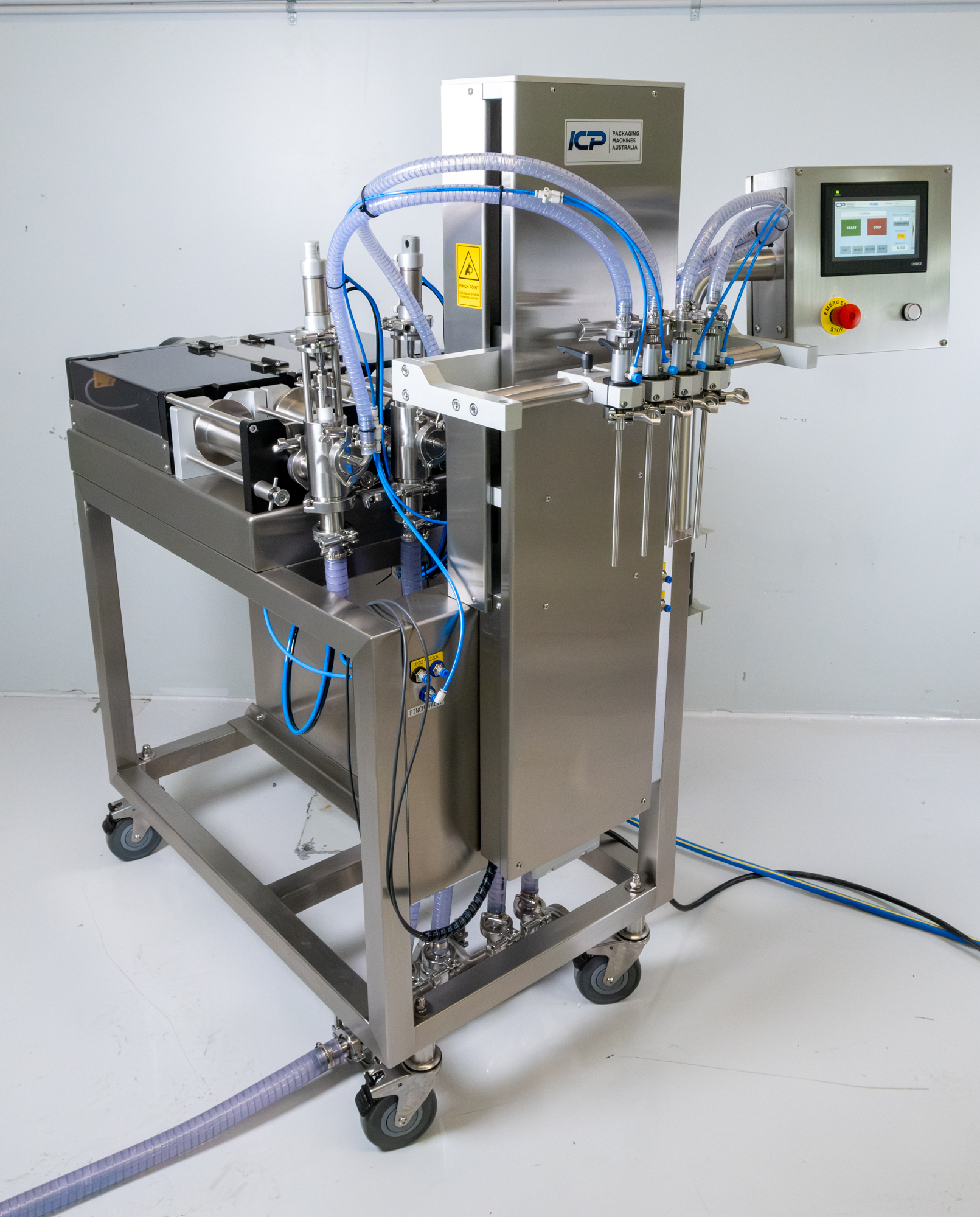 The ICP-M4SA is a high-performance inline auto filling machine equipped with advanced servo-driven piston technology and intuitive PLC controls. Designed for flexibility, it accurately fills a wide range of container sizes — from 12.5ml to 1.3L — making it perfect for small to mid-sized production runs.