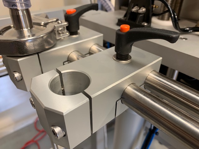 CNC machined and anodized 6061 aluminium. Clamps are designed to work with bottom up fill for all the ICP branded multi fillers and the ICP series of nozzles