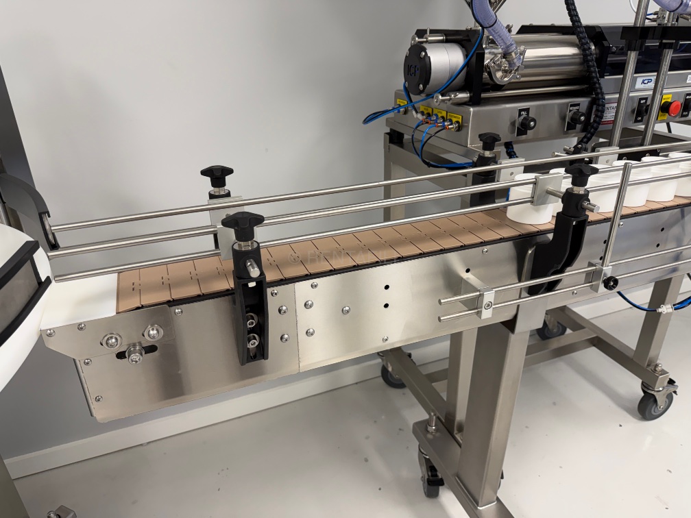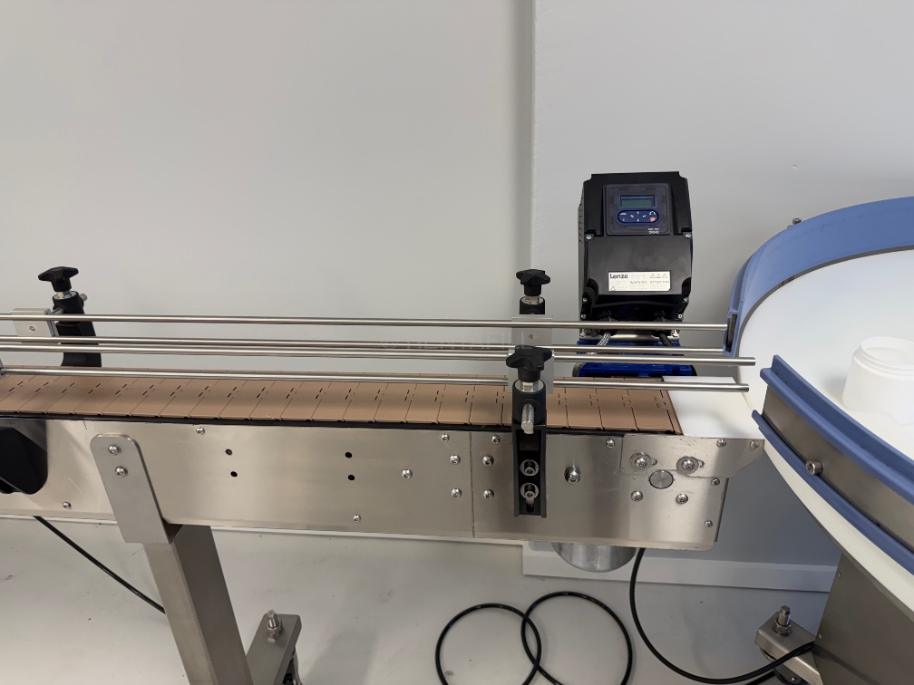 Available in stainless steel or plastic slat chain configurations, these slat conveyors are ideal for bottle handling, filling lines, capping machines, and labelling systems. Heavy-duty alloy guide rail clamps provide exceptional stability for mounting rails, gates, and accessories, while precision lead-in and lead-out plates ensure smooth product transfer.