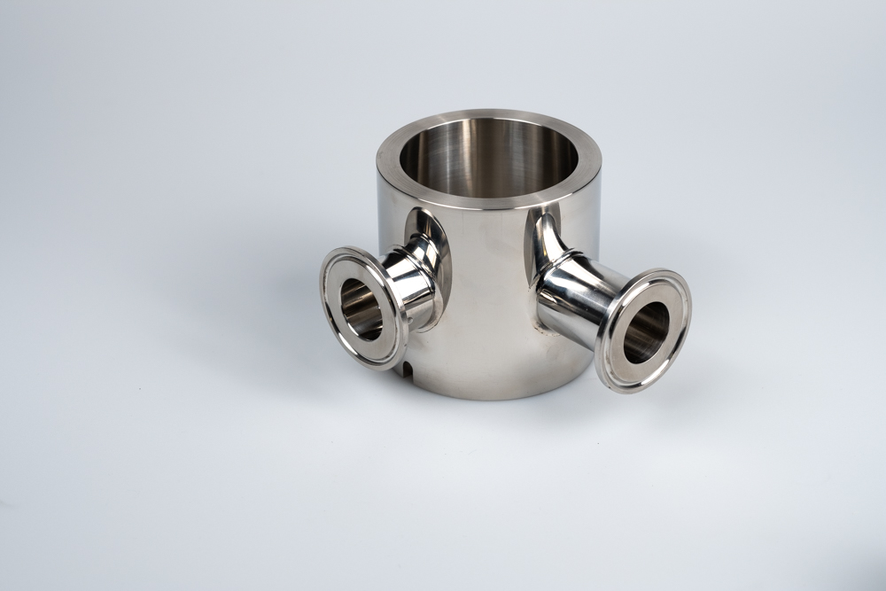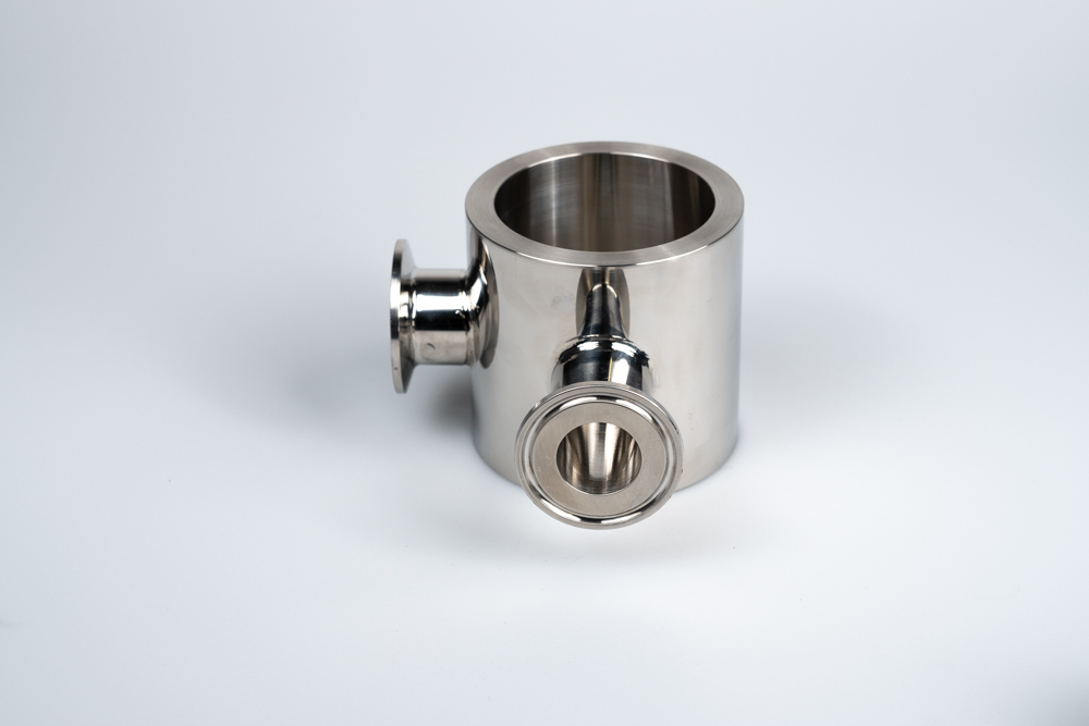 Rotary Valve body to suit ICP Packaging Machines benchtop and auto fillers – CNC machined 316L stainless valve body.