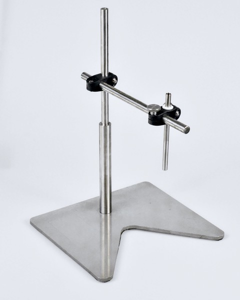 Stand base, main vertical rod, 2 cross clamps, and 1 x 12mm stainless steel horizontal rod.